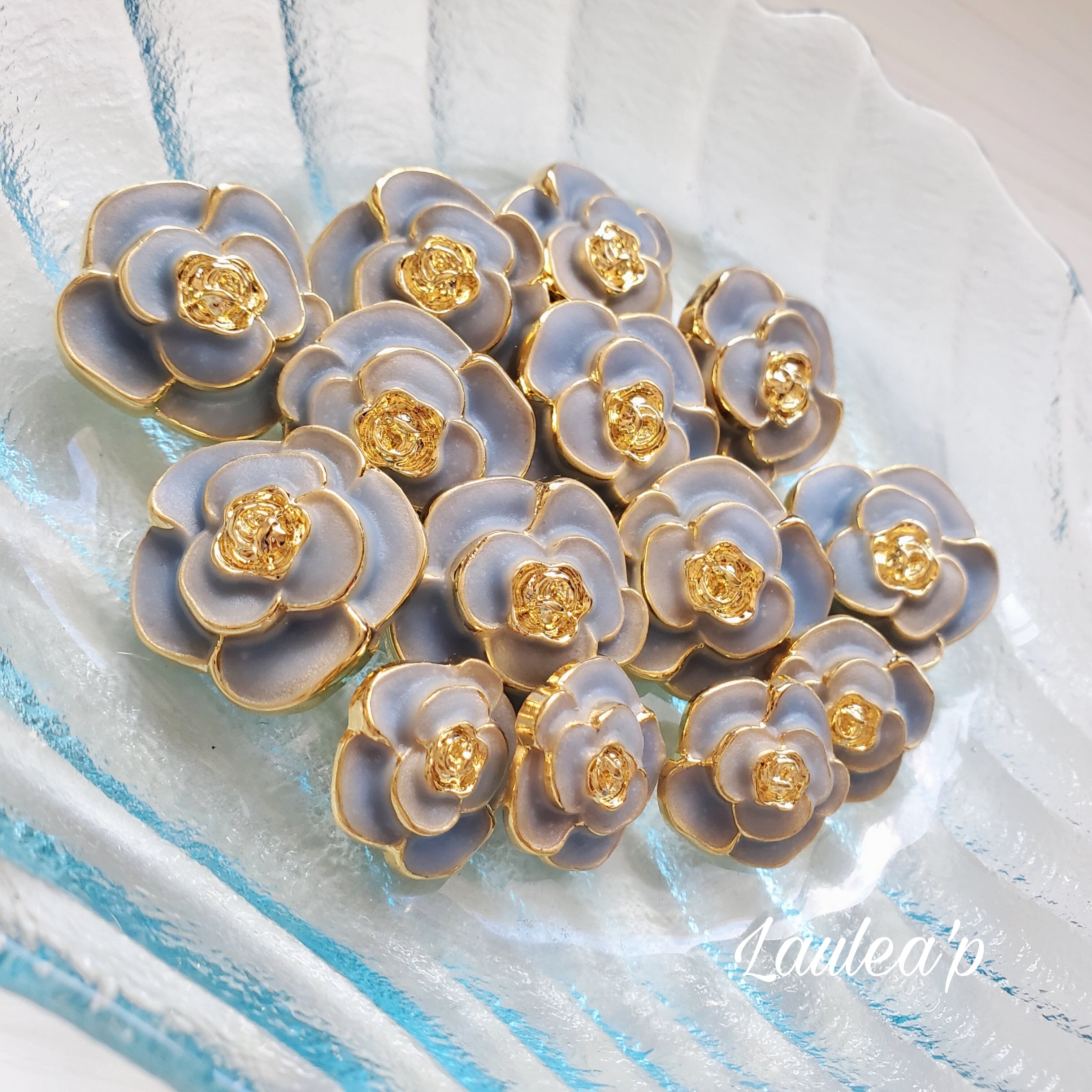 (25mm)ゴールドローズボタン ❁.フロストブルー