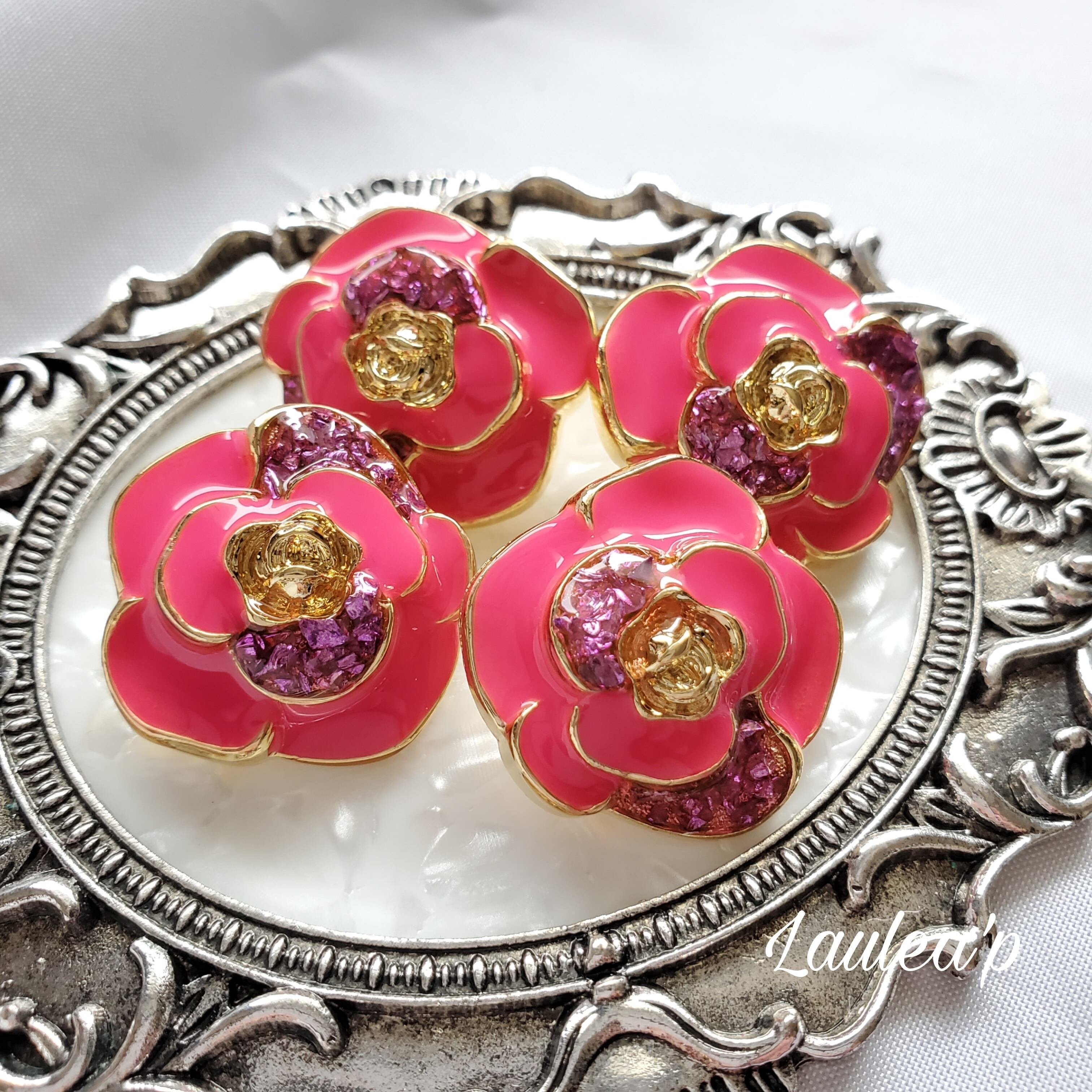 (25mm)ゴールドローズボタン ❁.ピンク ストーン
