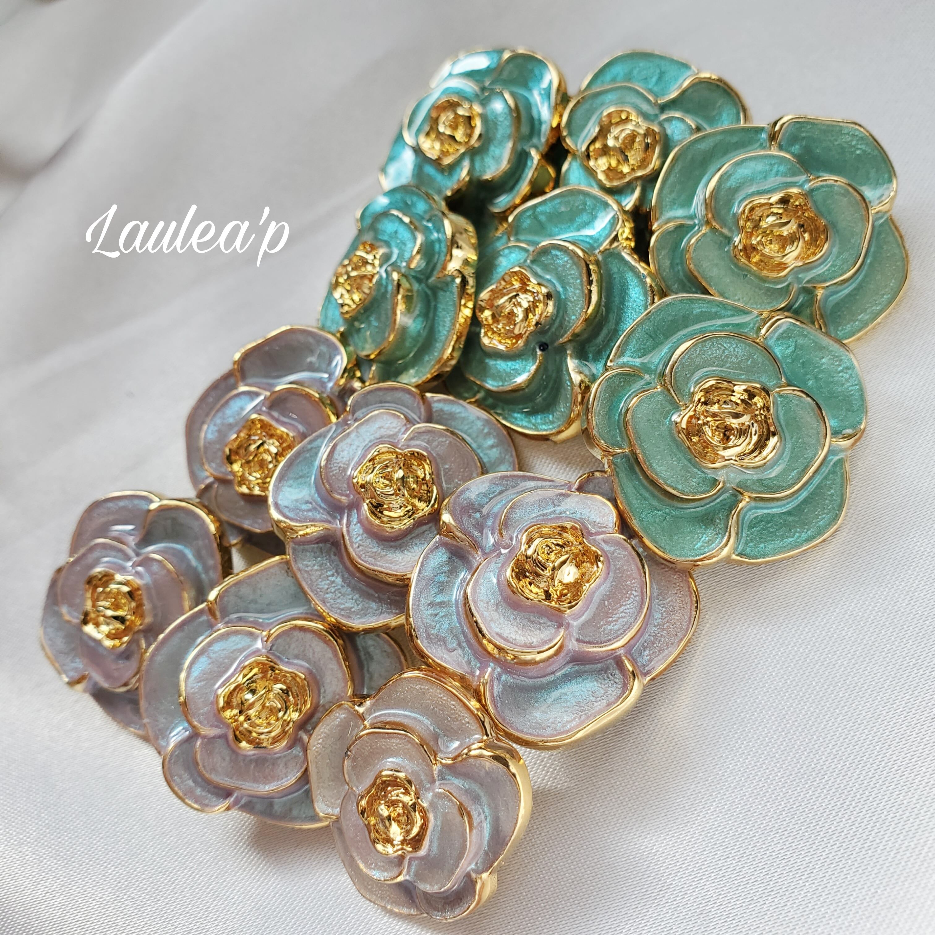 (25mm)ゴールドローズボタン ❁.マーメイドグリーン