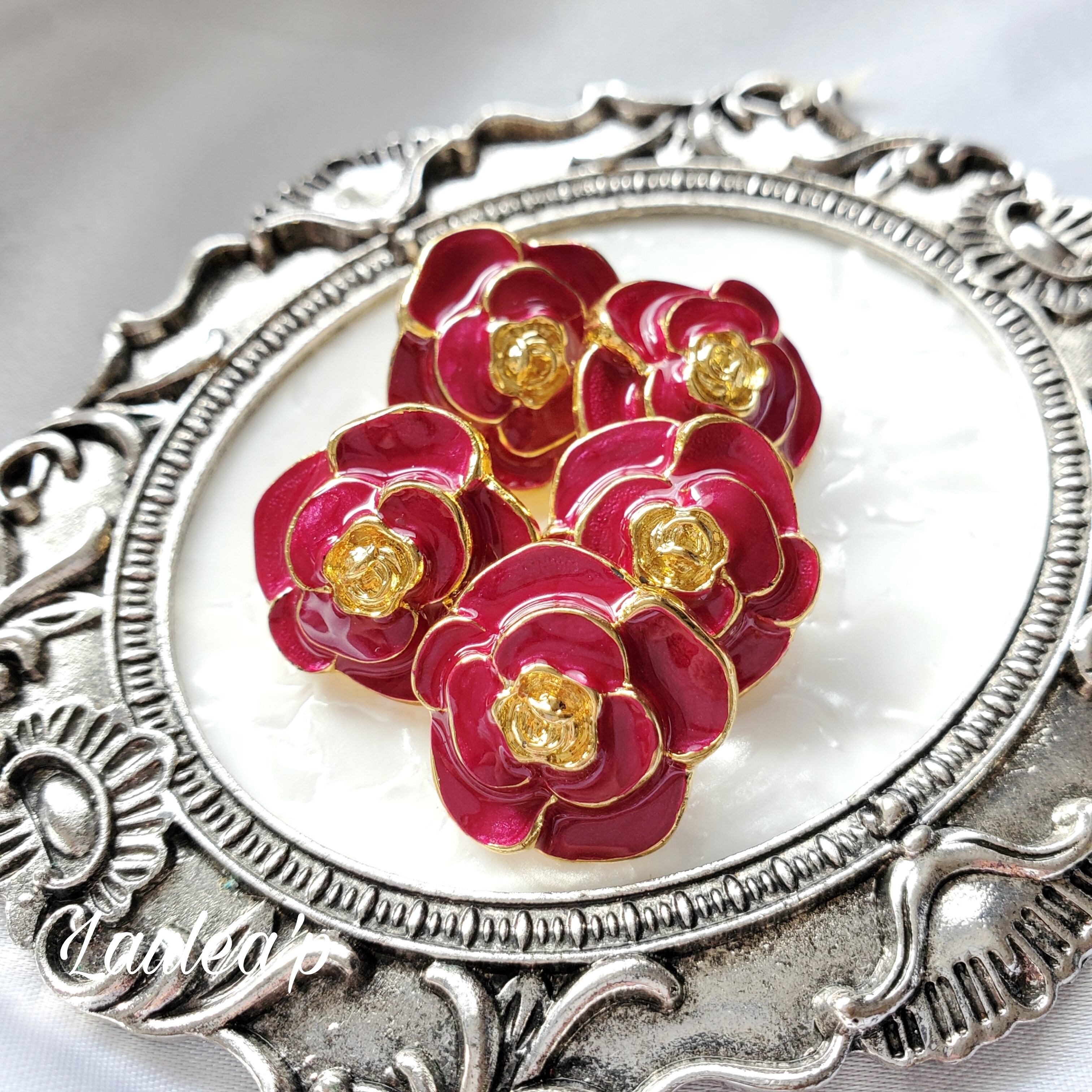 (18mm)ゴールドローズボタン ❁.メタリックピンク