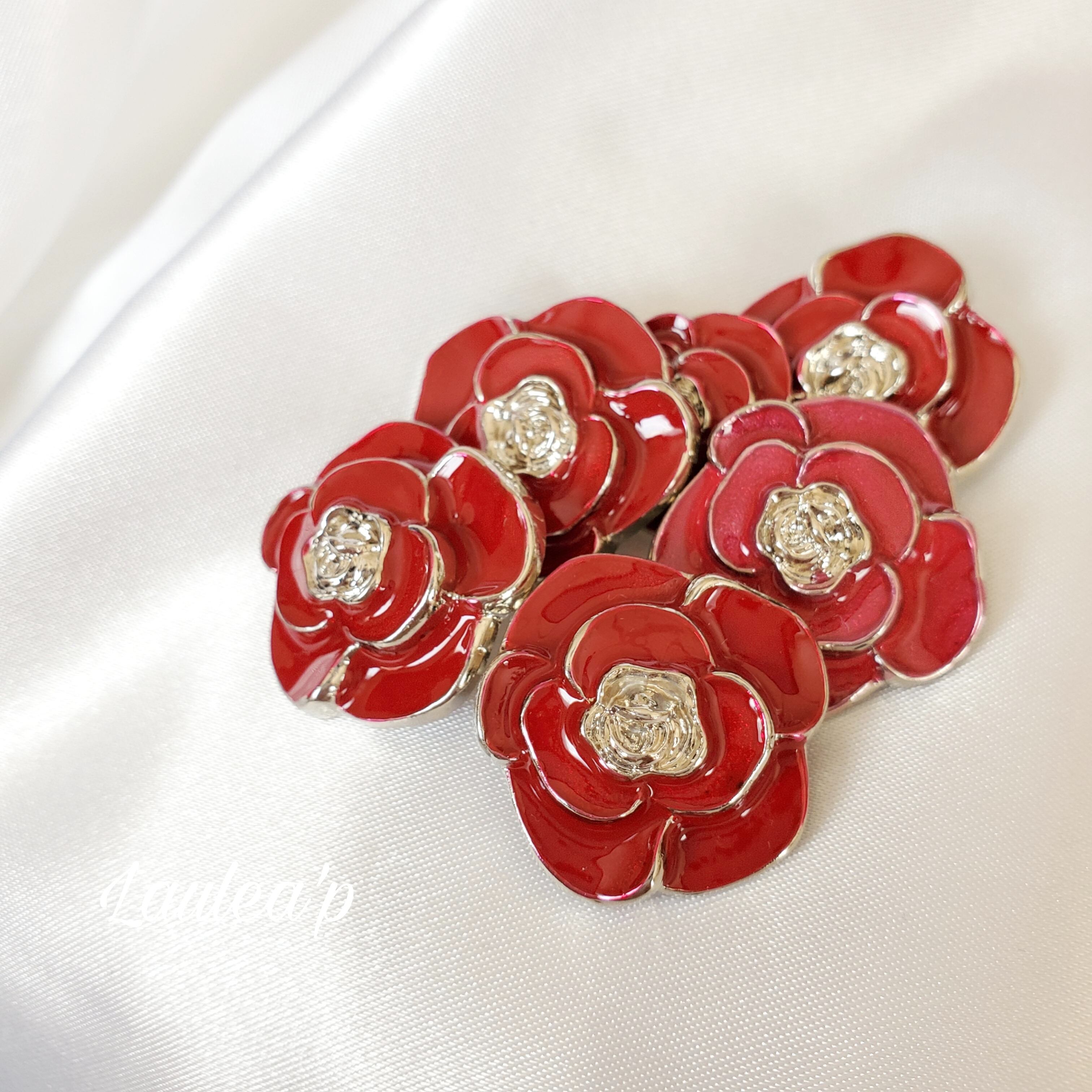(18mm)シルバーローズボタン ❁.レッド