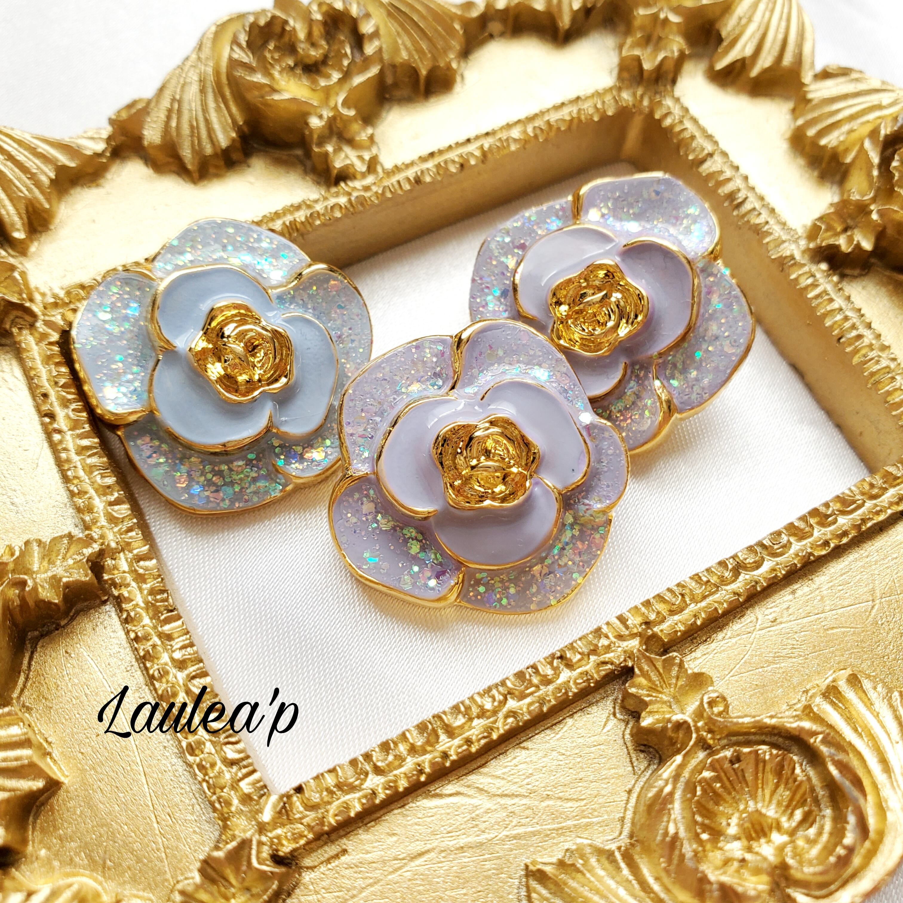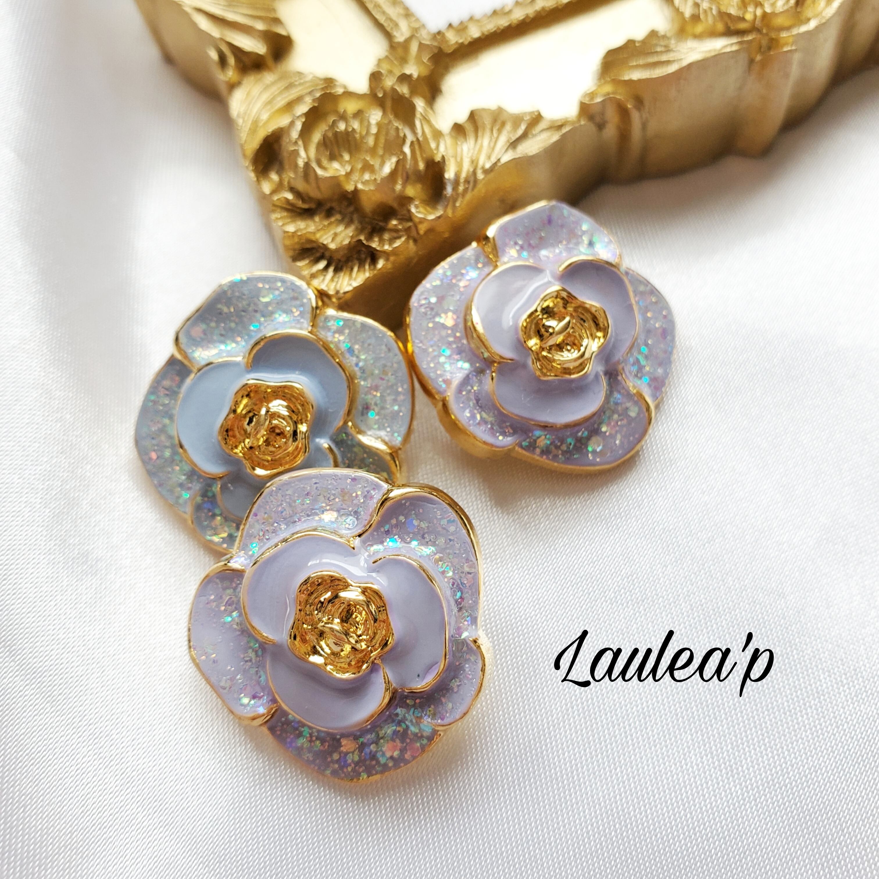 (25mm)ゴールドローズボタン ❁.ライトブルーラメ