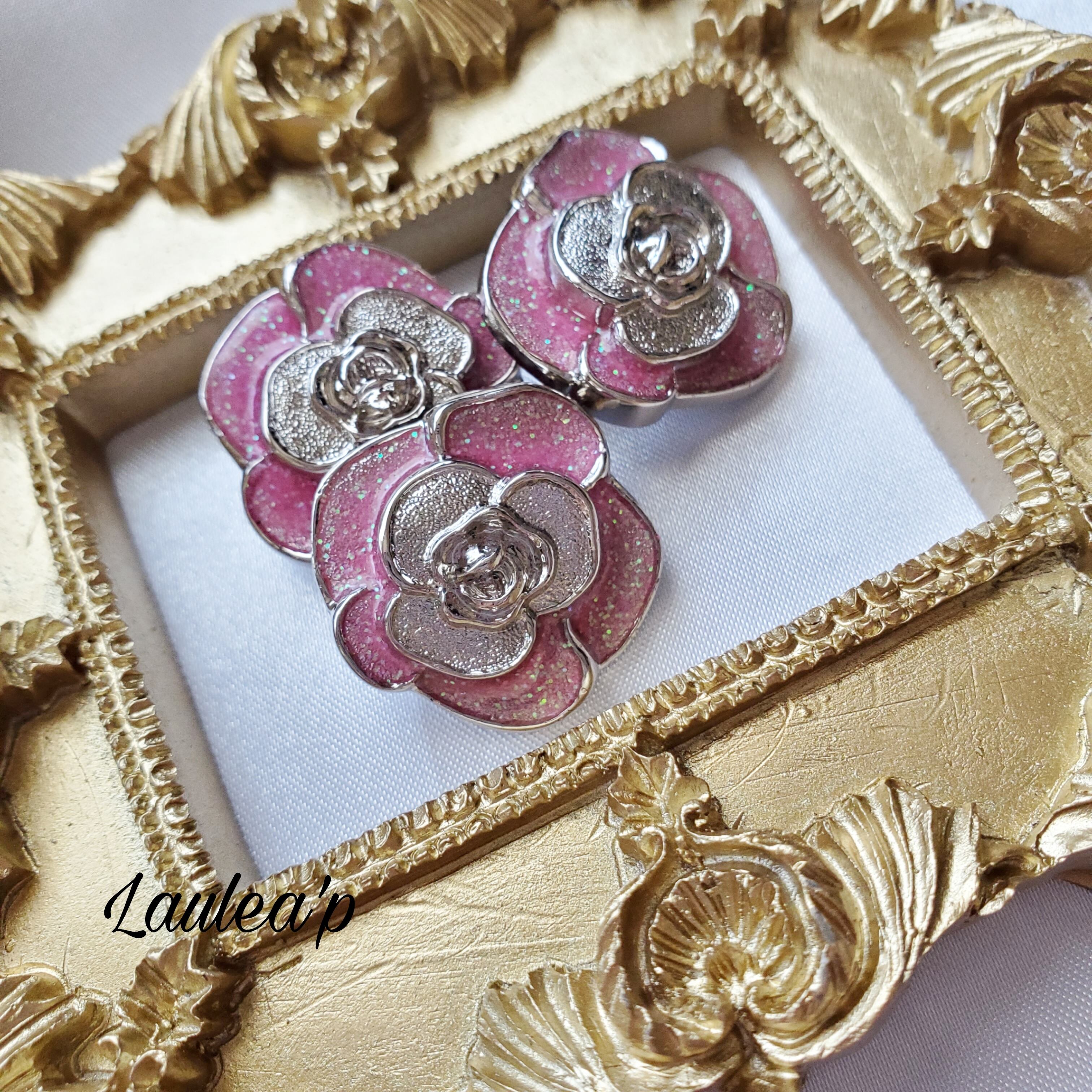 (25mm)シルバーローズボタン ❁.パウダーキャンディ