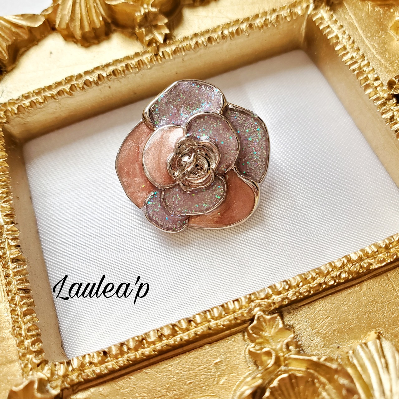 (25mm)シルバーローズボタン ❁.オレンジパールラメ