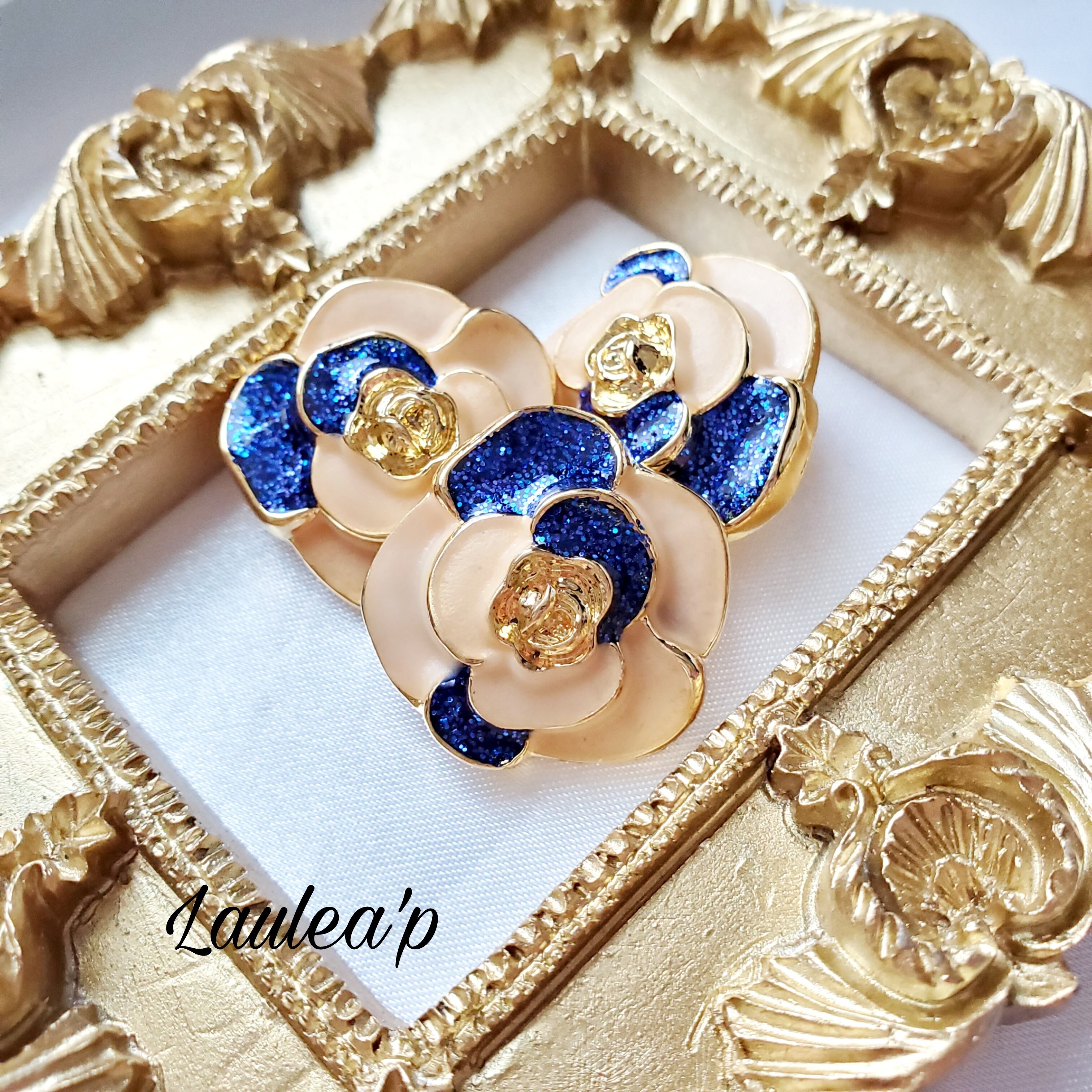(25mm)ゴールドローズボタン ❁ブルーフロスト