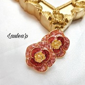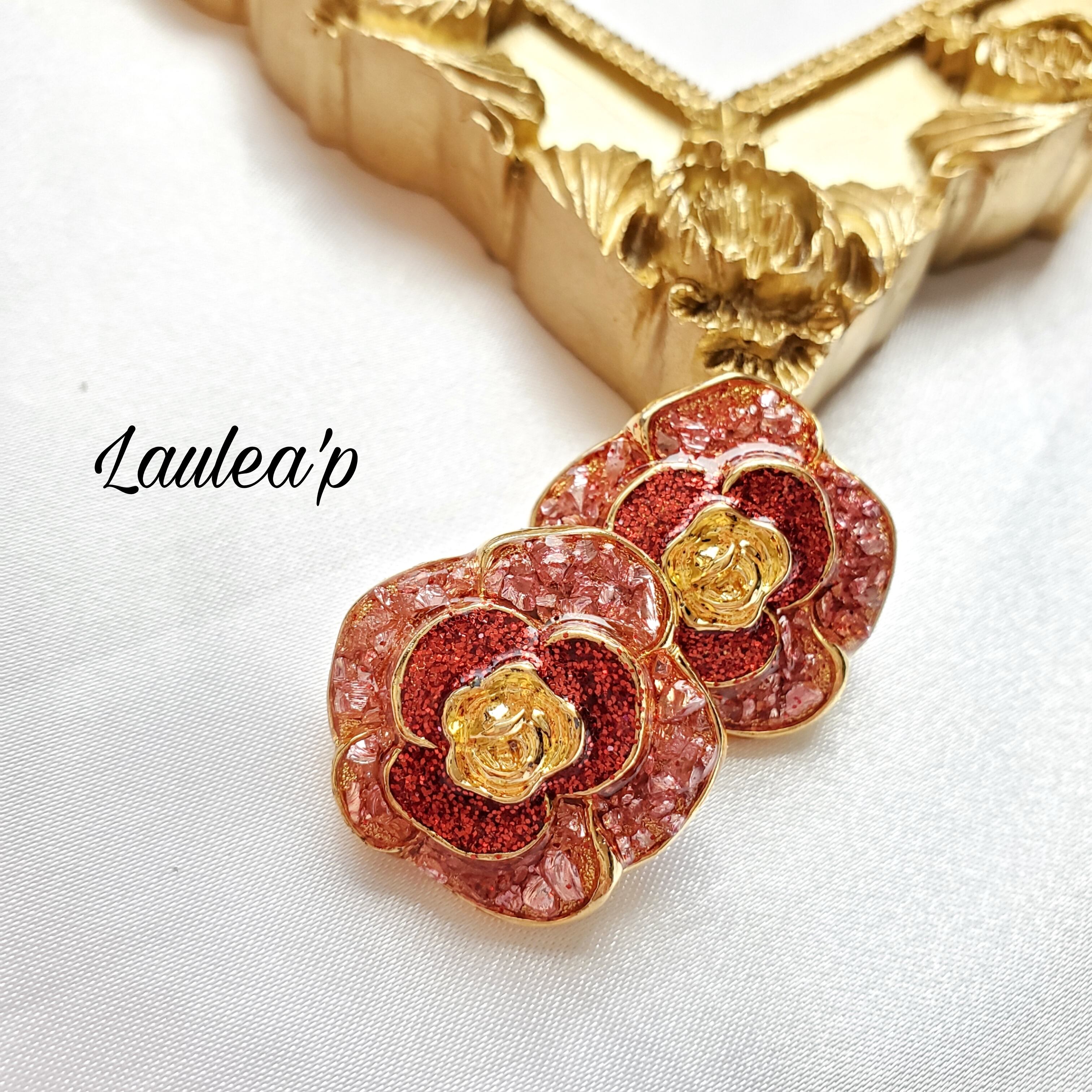 (25mm)ゴールドローズボタン ❁レッド&ピンクストーン