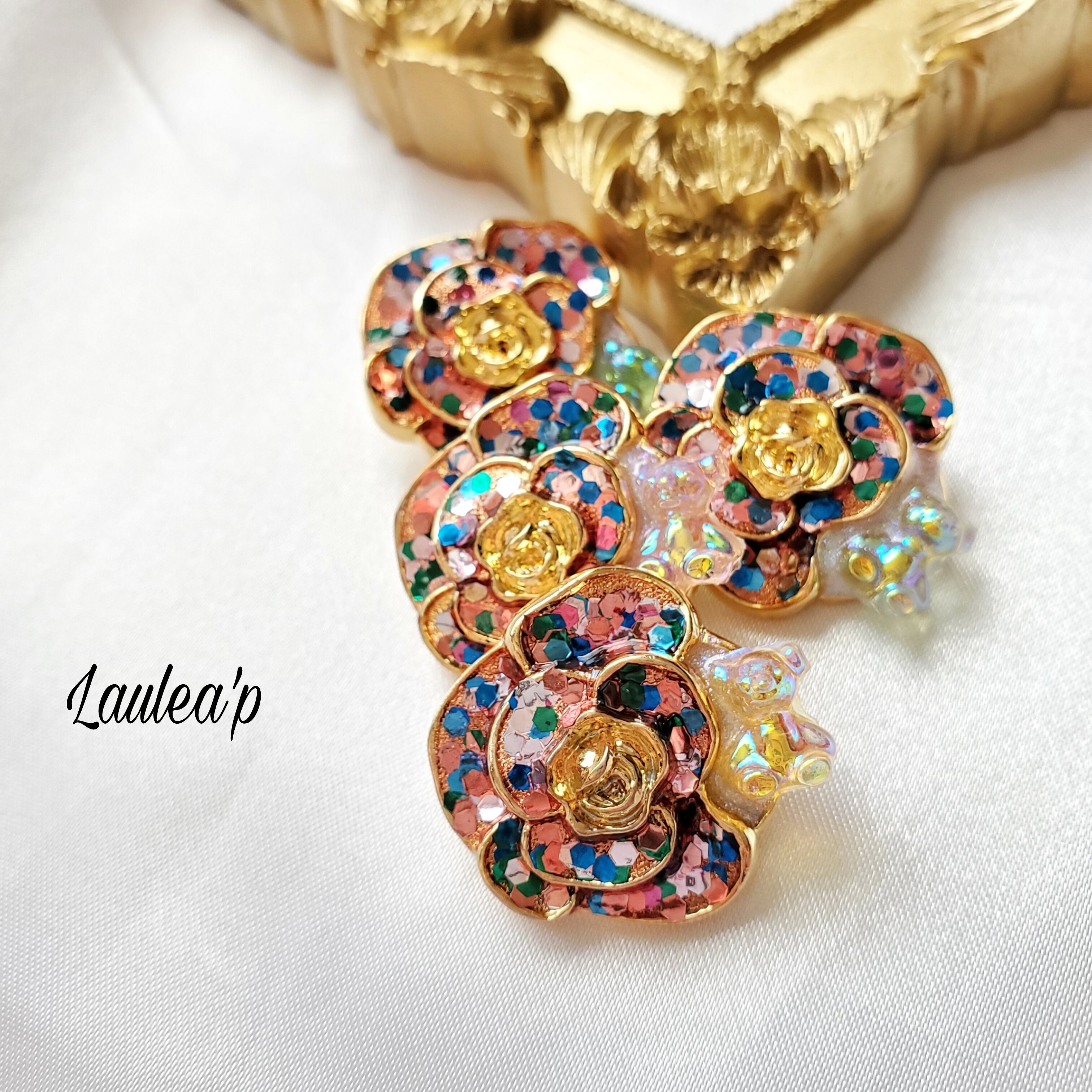 (25mm)ローズボタン ❁.ミックスラメグリッター(くまちゃん)