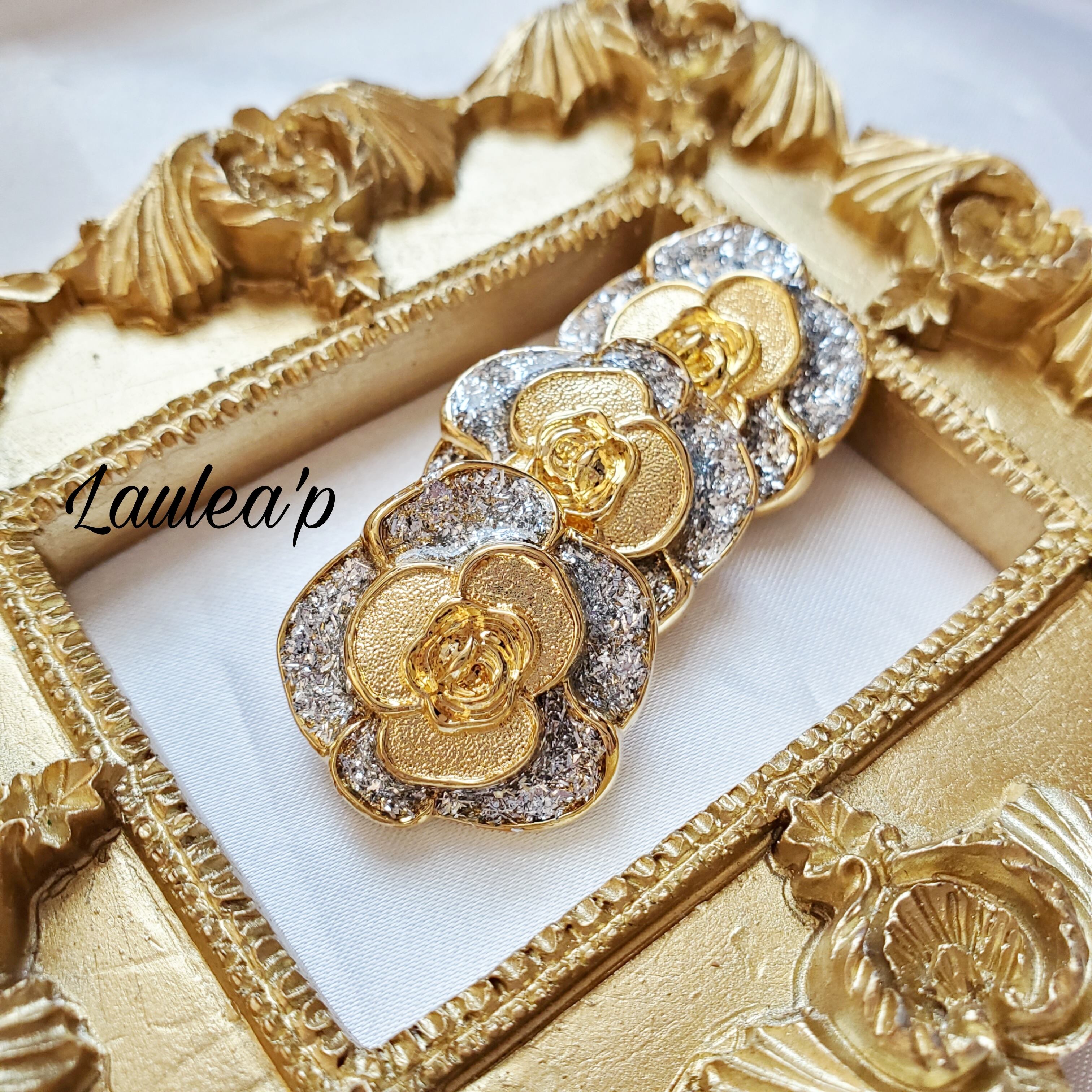 (25mm)ゴールドローズボタン ❁もけもけシルバー