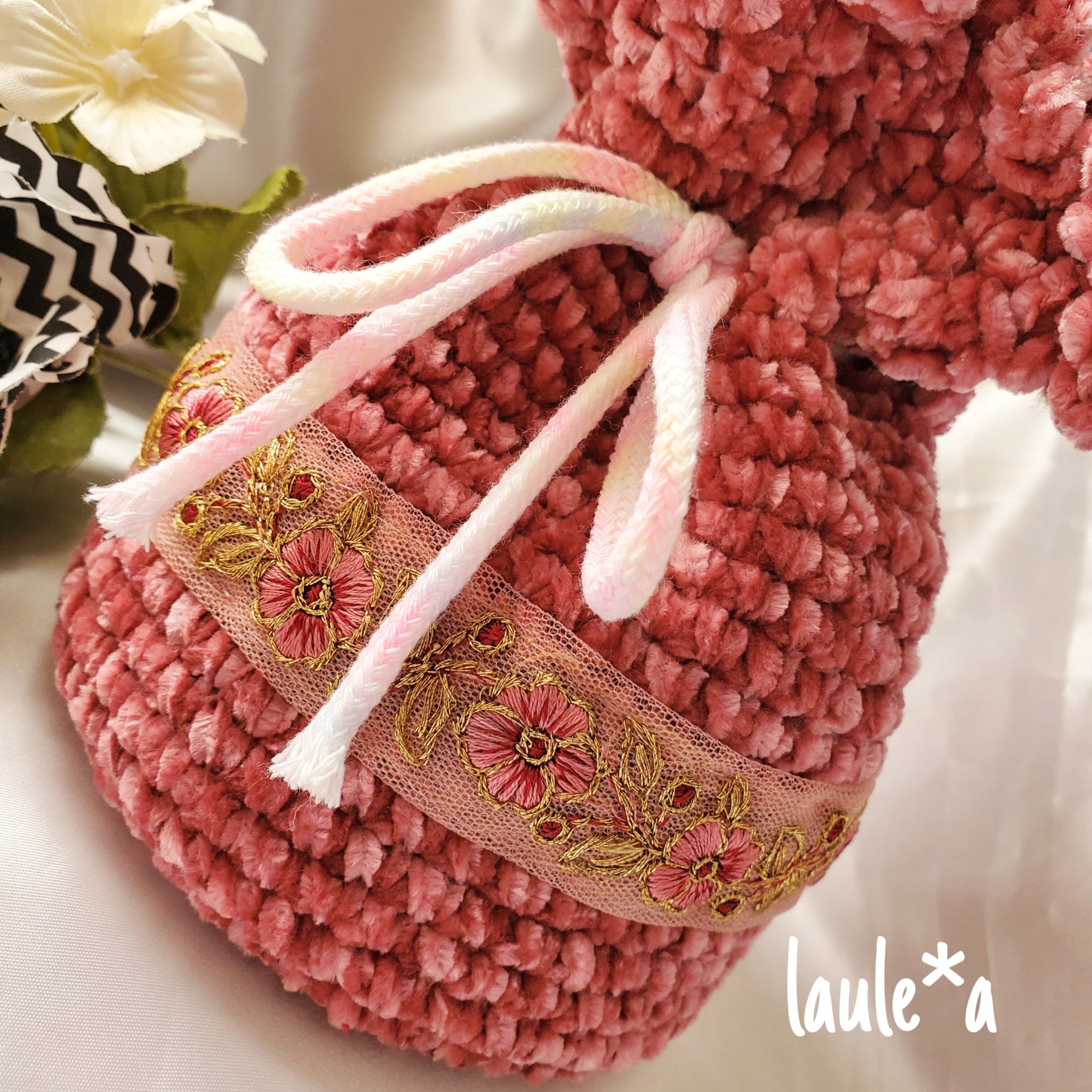 #ベロア巾着 #モール糸 #刺繍リボン巾着