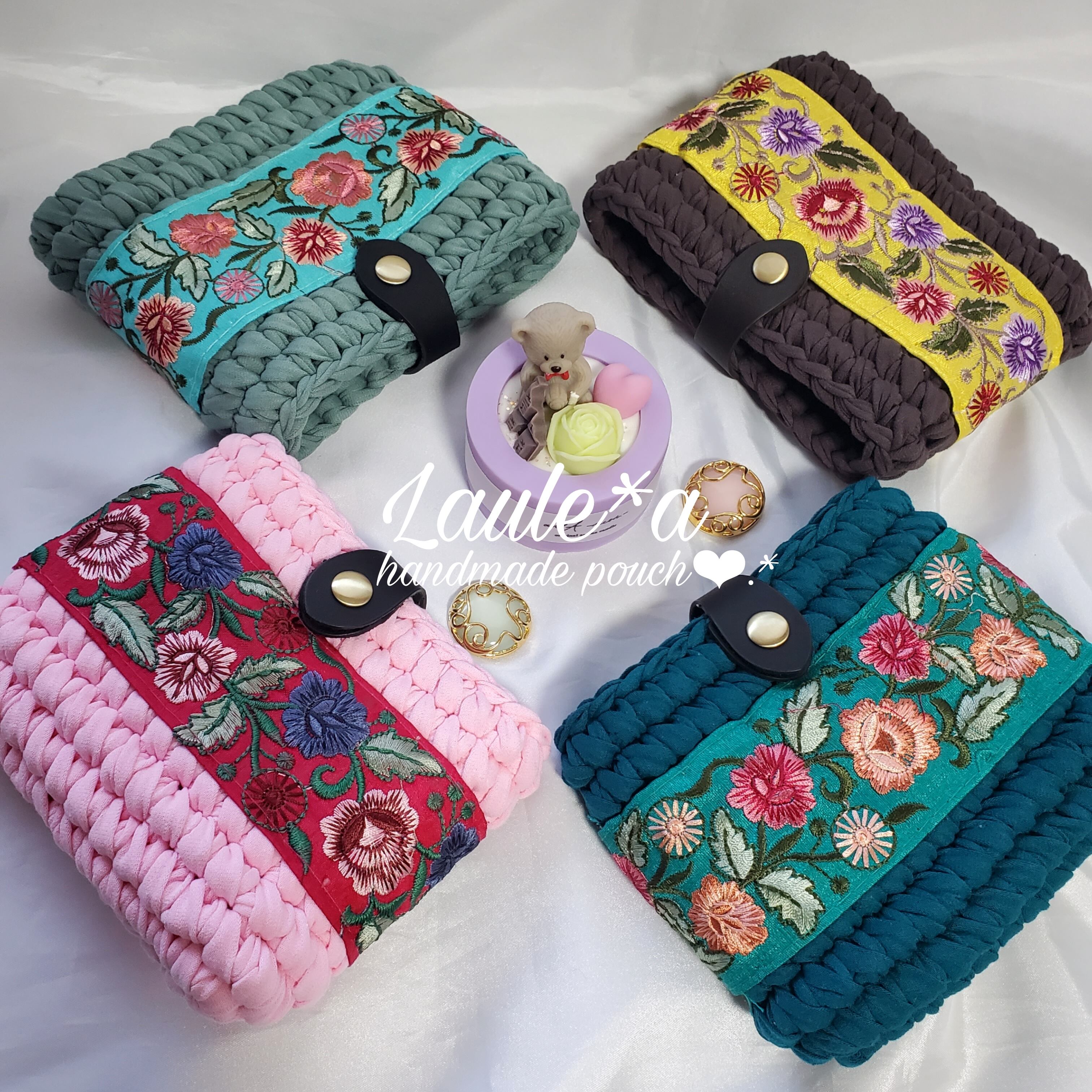 #刺繍リボンポーチ #フラップポーチ #小物入れ
